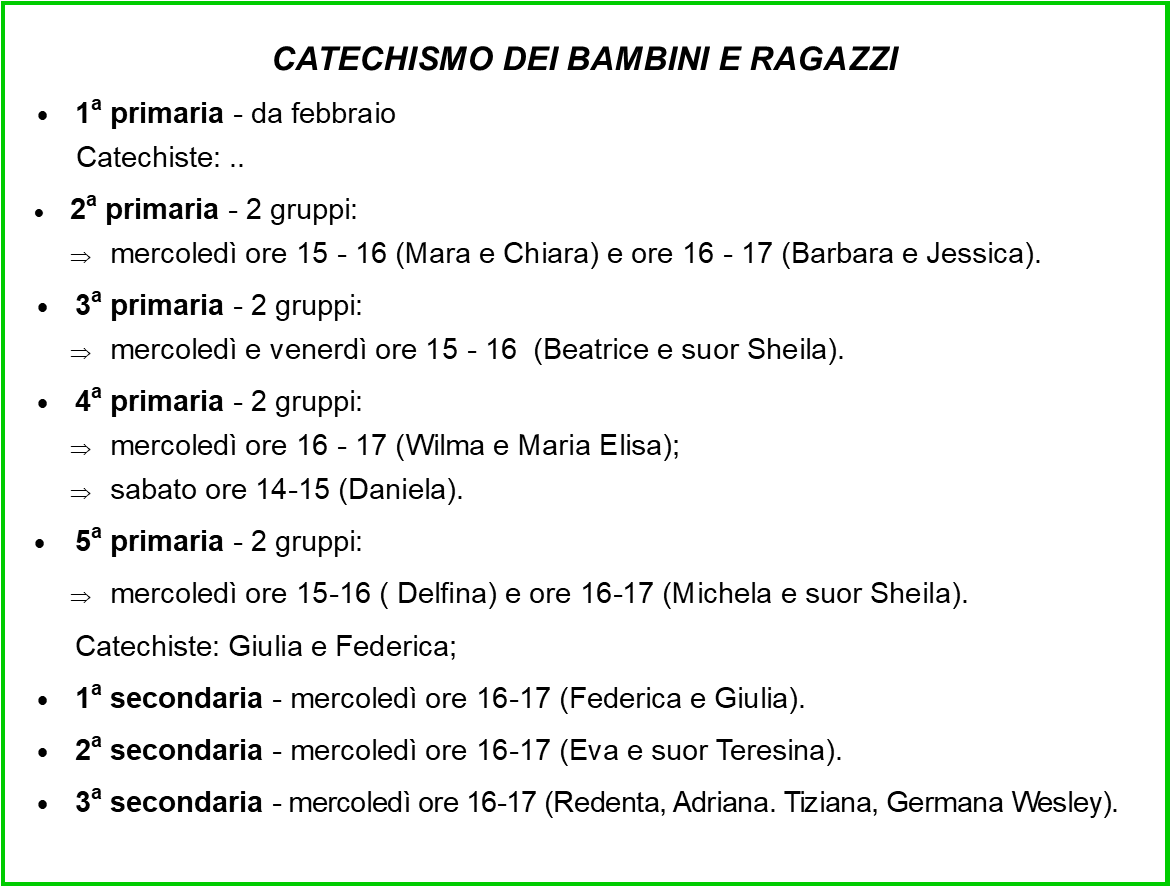 Catechismo - classi e orari